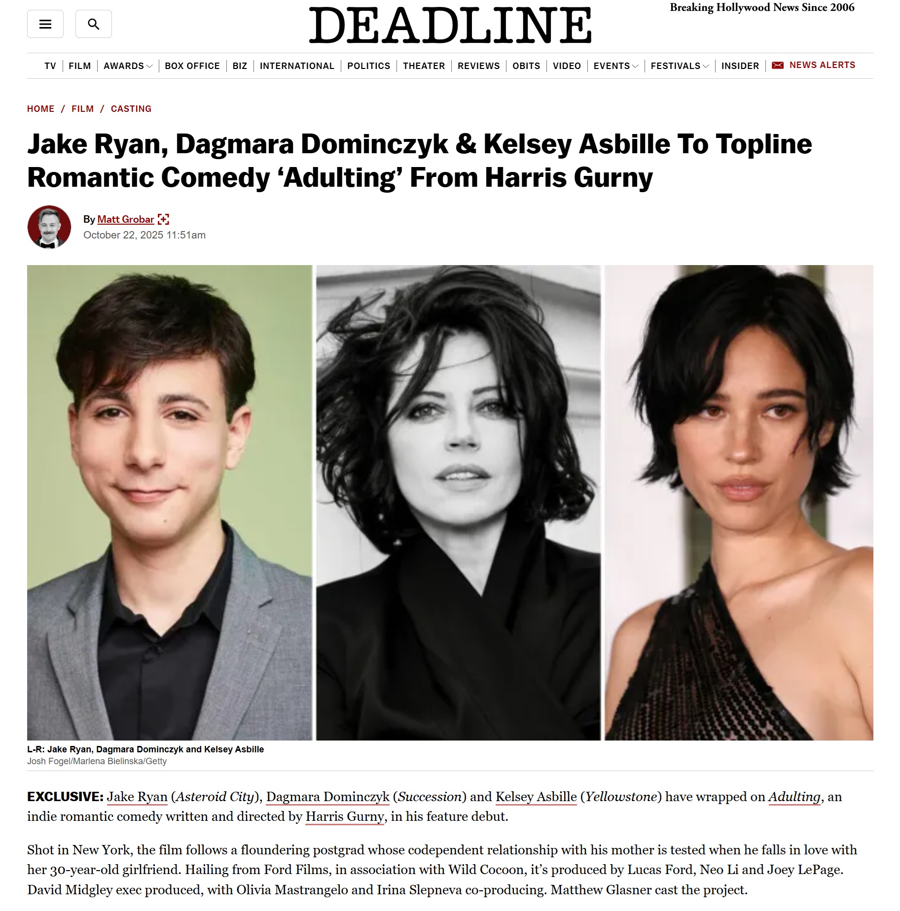 Wild Cocoon is collaborating with Ford Films on the production of Adulting by Harris Gurney. Discover more at Deadline.